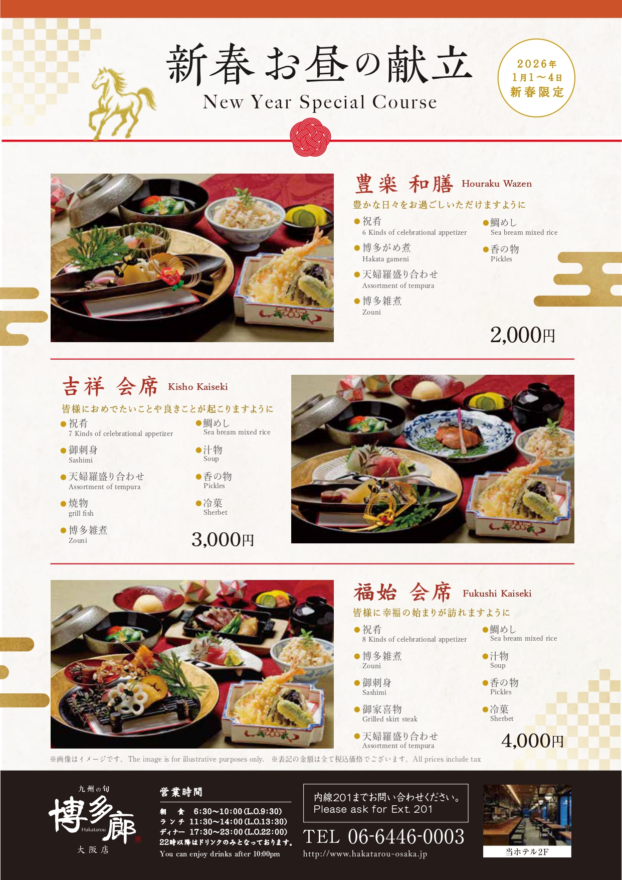 新年の始まりは、博多廊大阪店でごゆっくりお過ごしくださいませ。