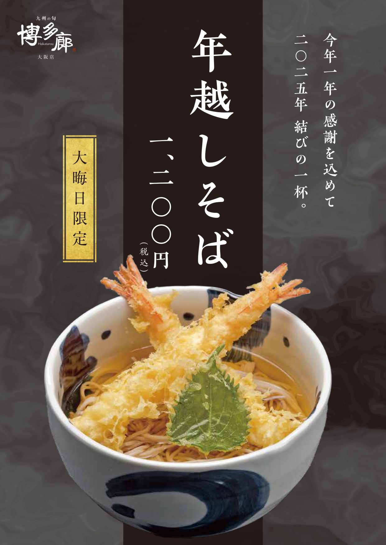 今年も2025年の締めくくりに博多廊大阪店の年越しそばはいかがでしょうか?
